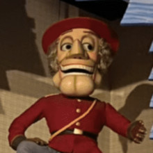 |  | Generation 2: AVG Design The second and final generation of Dudley animatronics, designed by AVG, made its debut at the Edmonton location, and was almost identical in appearance with the exception of a slightly differently shaped nose, a more horizontally protruding jawline, and minor facial structure differences. Three of these would be reused for Dreamation-designed stages. |  |