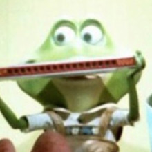 The Jay Ward-created Hoppity Hooper was part of the Bullwinkle's original prototype stage show, and he appears in the modified A Stage as well. Hoppity was no longer included in future stages, including being notably absent from the B Stage. The animatronic has no voice, and only communicates by playing his harmonica.
