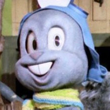 Rocky the Flying Squirrel (also known as Rocket J. Squirrel) is Bullwinkle's best friend and roommate. He made his debut at the Santa Clara location and has been featured in every stage show since. He currently performs at the Tukwila location, the only remaining show in existence. Rocky plays a string instrument while standing on a wooden crate of Upsidasium. Early shows depict Rocky wearing a green and yellow scarf, while later shows have him either with a white scarf or no scarf. He appears in the Center Stage or in the fire station of the Northwoods stage show.